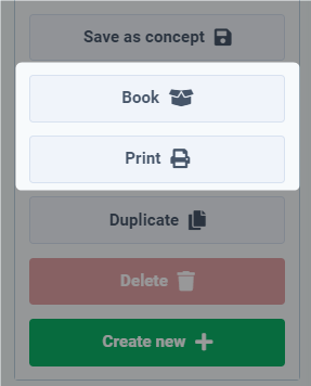 In ons portaal kun je een zending op 2 verschillende manieren boeken; via de ‘Book’-knop of de ‘Print’-knop. Wanneer je op Book klikt, wordt de zending geboekt maar het label wordt nog niet geprint, dus om het label te print moet je ook op print klikken. Dit kan echter sneller, omdat de ‘print’-knop gelijkstaat aan book + print, zodat je de zending kunt boeken en het label kunt print met slechts 1 klik.
