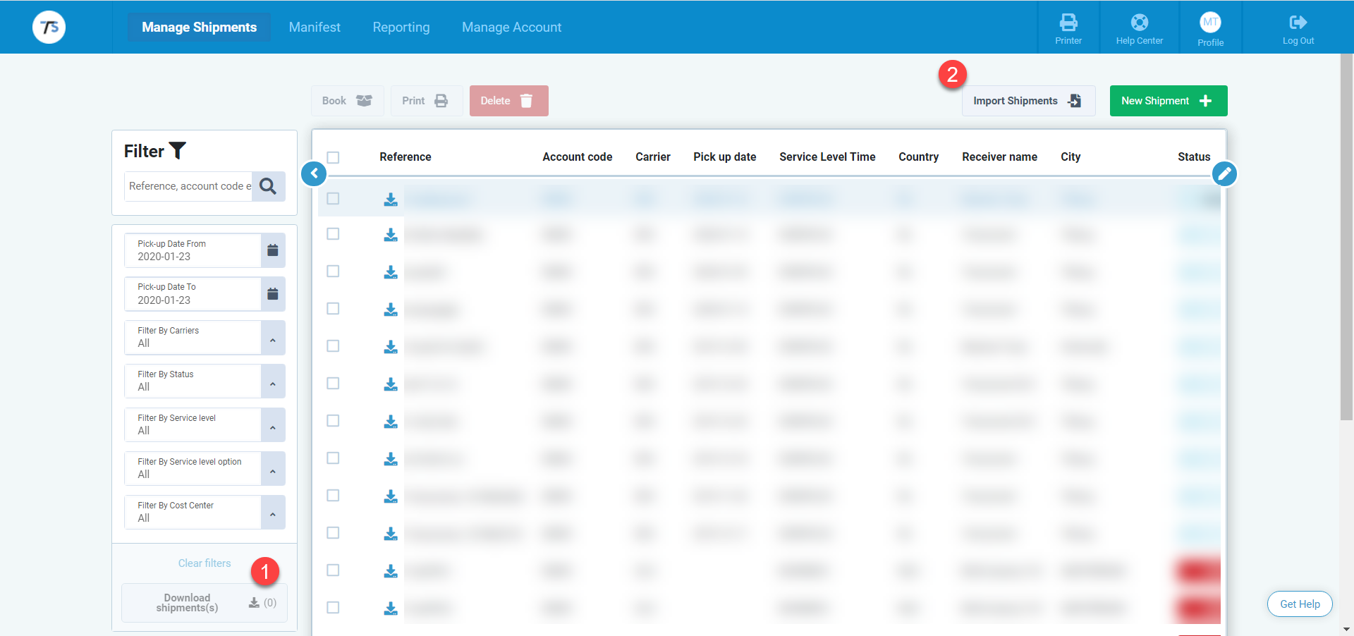 - Download a shipment om de template te downloaden met alle velden die je kunt uploaden