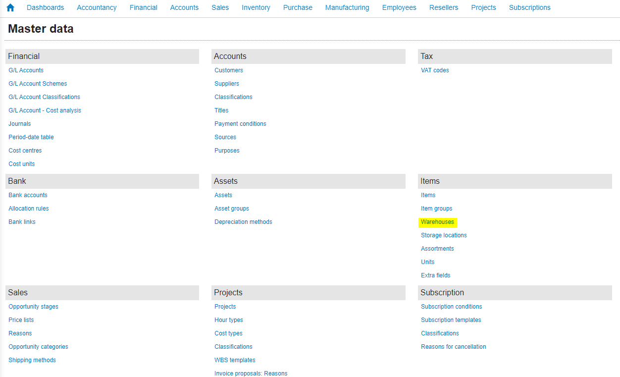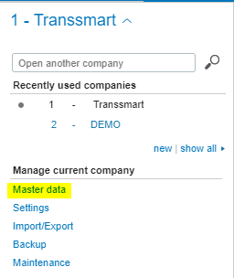 Ga naar je account settings in de linkerbovenhoek en klik op Master data