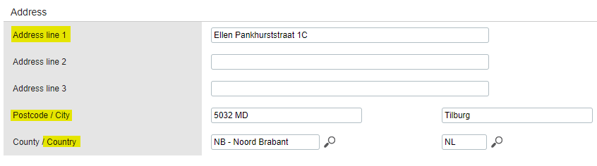 Vul de juiste gegevens in. De minimale gegevens die moeten worden ingevuld, zijn hieronder geel gemarkeerd: