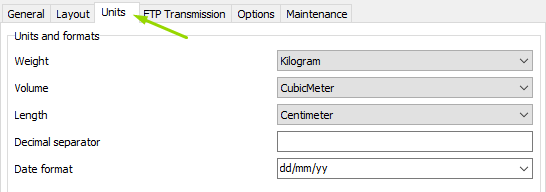 - Fanen Units lar deg konfigurere enhetene og formatene som brukes i filen.
