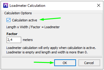 - Merk av i boksen ved siden av Calculation active. Standardfaktoren er 2,4 meter, men du kan endre dette ved behov. Klikk OK for å lagre.