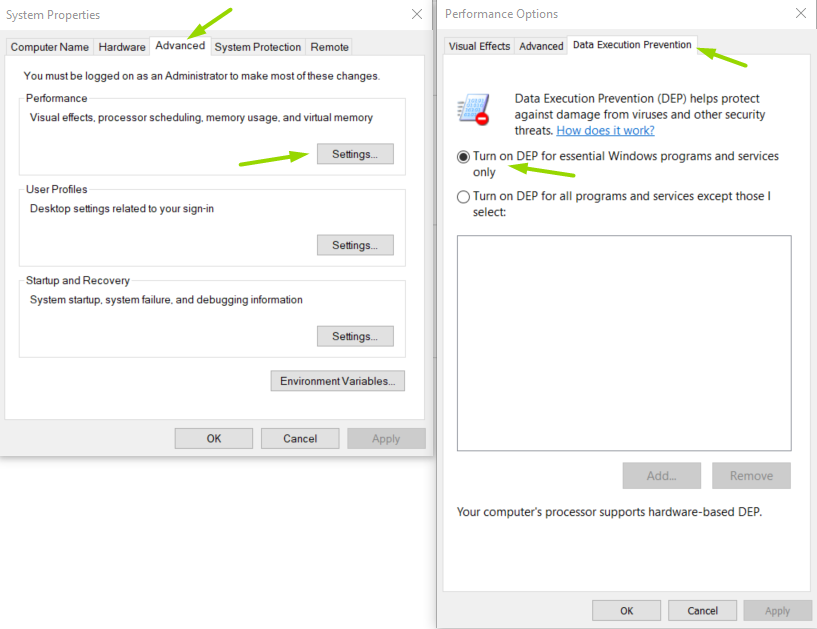 Kan du inte inaktivera DEP?