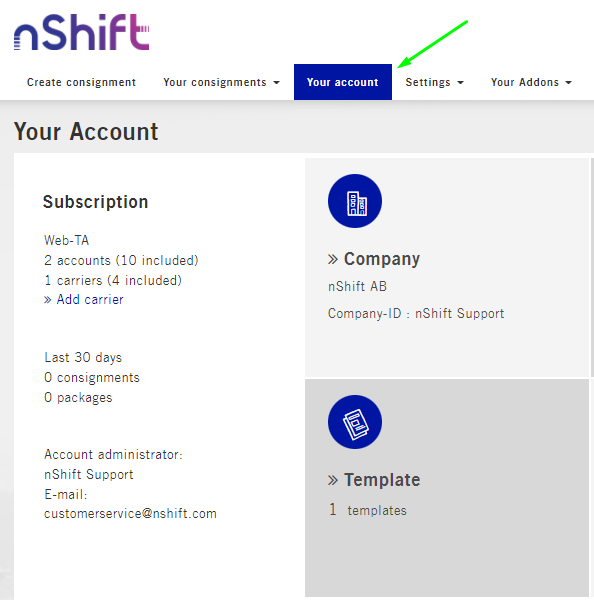 - Gå till Your Account > Template.